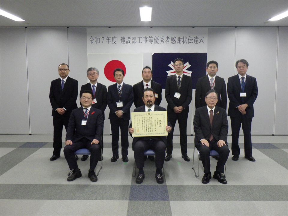 令和7年12月11日に行われた2025年度建設部工事等優秀者表彰の伝達式において、令和6年度に完成した北海道発注工事の施工にあたり北海道知事鈴木直道様より感謝状を拝受しました。